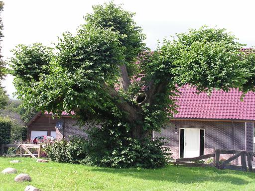 Deze prachtige knotlinde staat bij een s-bocht in de weg tussen Mid- en Zuidlaren. Nog niet zo lang geleden had je er als extra bezienswaardigheid een oud molenaarshuis achter, dat nu vervangen is door onbenullige nieuwbouw. De context is dus deels naar de ratsmodee geholpen, maar daar kan die knotlinde niets aan doen.