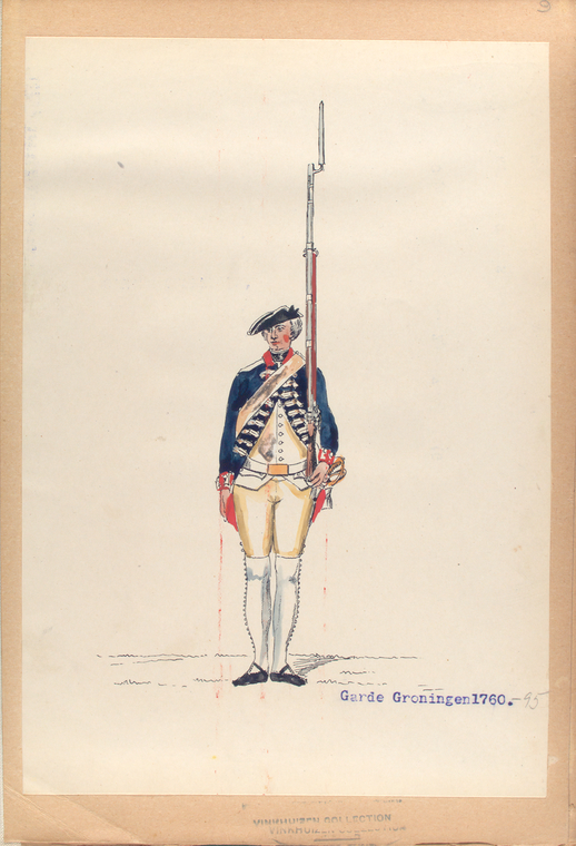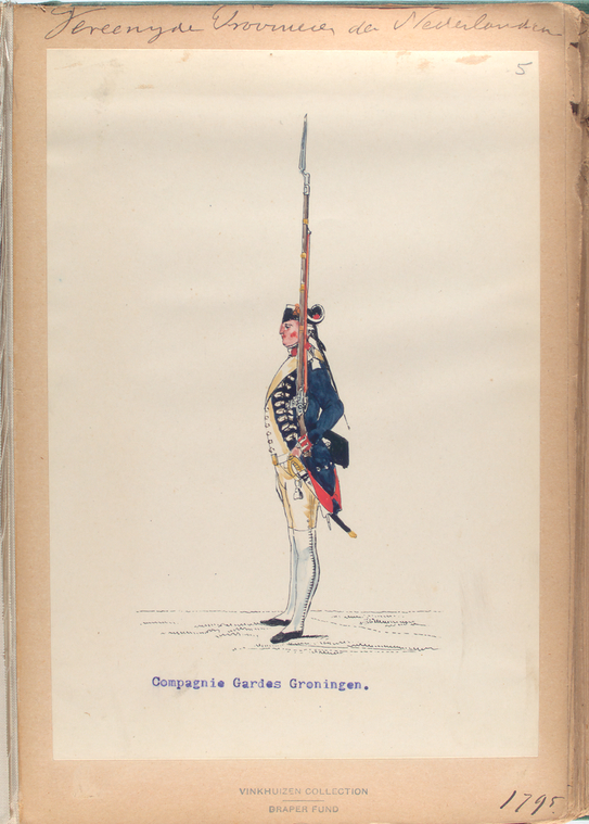 De blikjes met het prinsenwapen zullen wel bestemd zijn geweest voor diens persoonlijke troepen, de Garde. Bij deze special forces zaten nogal wat grote, blonde, blozende Groningers. Onlangs trof ik in de digitale plaatjesgalerie van The New York Public Library (NYPL) twee aquarelletjes van zo’n Groninger Prinsengarde aan: