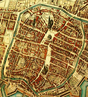 In de stad bevonden zich ook heerlijk brede pleinen. De eerste is vlakbij het Leeuwarderveer (kop Hoendiep), de plaats waar we aankwamen en er staat een kerk op (de A-kerk). Het tweede plein (Grote Markt) ligt een eindje verder, er middenop staat het Raadhuis, en op de hoek bevindt zich de andere grote kerk, die een buitengewoon hoge toren heeft. In een venster zat een gebrandschilderd glas met het portret van koning Philips van Spanje.