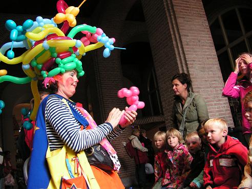 Geplaatst op: 28 augustus 2006 Hoort bij: Stad nu Een reactie plaatsenBommen Berend, de dag waarop we herdenken dat een belligerente bisschop smadelijk afdroop, zorgde voor een bult lawaai vlakbij mijn werkplek. Op het Broerplein stond een of andere House-dj zijn dreunende best te doen. En vanwege de regen vonden de kinderactiviteiten plaats onder de Harmoniepoort, wat nog een stukje dichterbij is dan het binnenplein. Creatief Bureau Remisolleke doet hier op de foto heur aandachtige pupillen voor hoe je figuren uit ballonnen vouwt. Ballonnenclown, dat is tegenwoordig een gewaardeerde professie.