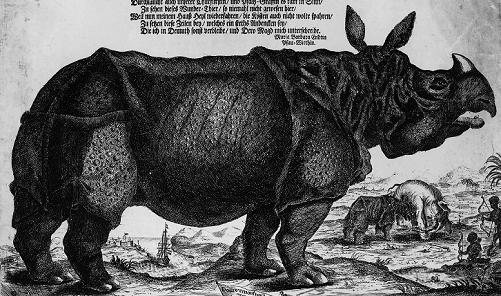 Geplaatst op: 7 december 2006 Hoort bij: Stad toen Een reactie plaatsen“Word hier meede aan alle Heeren en Liefhebbers bekent gemaakt, dat alhier in Groningen is aangekomen een Levende REINOSCEROS of NASEHOORN (…) is omtrent 6 jaaren oudt (…) voor op de neus heeft hy een Hoorn dewelke eerst in ’t 7de Jaar vol uytwast (..) waar meede in de Wildernisse als hy quaat is de aarde geheel omme keert en een gewottelde boom of wat hy aantreft uyt de aarde na agter zig werpt. (…) In ’t lopen is hy niet tegenstaande zyn groote en zwaarte zoo gau, dat hy het snelste Paard voorby lopen zou. Tot een daagelyks voeder gebruykt hy 60 pondt hooy, 20 pondt broot en 14 Emmer water. Het is gevangen doen het 8 daagen oud geweest is, in het gebied van den Grooten Mogol, en van Bengalen over Holland alhier gebragt. Zynde een wonder van de Weereld om gezien te worden.”