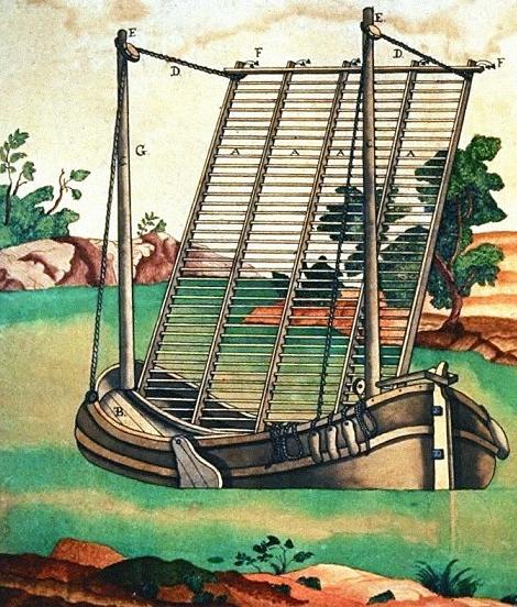 Ik ben geen botenbouwer, maar dat kan zelfs ik zien, een platbodem met deze constructie zal nooit goed varen. Wonderlijk idee…..