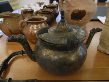 Uit de pot kwam het water waarmee de koopmansfamile de handen voor het eten waste. In tegenstelling tot wat bepaalde stereotypen willen, waren deze Alkmaarder middeleeuwers dus best op enige reinheid gesteld.
