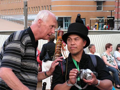 Een oudere heer knoopte een gesprek met hem aan, en ik maakte een omtrekkende beweging: