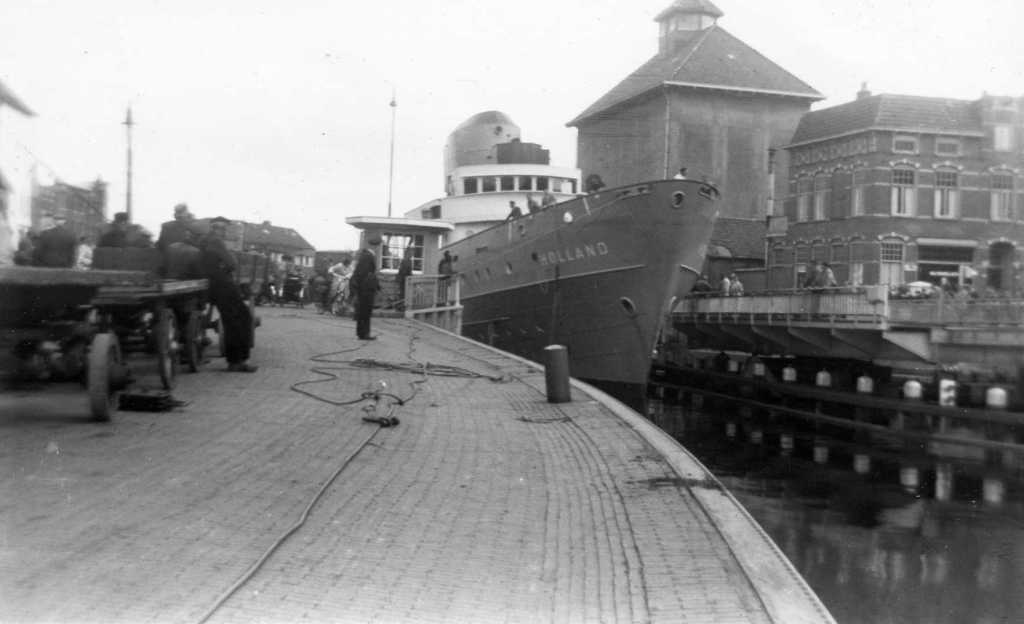 Van wijlen Luit Dijkstra kreeg ik naderhand in 2010 drie foto’s die hij als jongen met een eenvoudig boxje gemaakt had, toen de Holland in 1951 door de Bonte Brug gebracht werd. Ze bleken precies na de andere gemaakt te zijn: