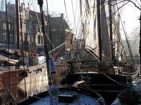 Dus dat is nou een kofschip! Artistieke foto hoor! Verder weinig ijs daarzo, ik zag hier nu toch ook de Hoogeveense vaart bedekt, helaas zal dat niet lang duren.