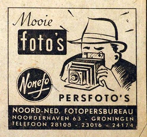 Er stonden niet overdreven veel advertenties op die 110 pagina’s. Die van het Noord-Nederlandsche Fotopersbureau (met maar liefst drie telefoonlijnen) valt dan bepaald op. Het bedrijf zat op de plek van eetcafé Kaap Noord: