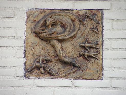 Deze moderne gevelsteen is te zien aan de westkant van de Westerhaven. Een menselijke figuur, waarvan niet uit te maken valt of het nou een man dan wel een vrouw is, wordt omvaamd, mogelijk zelfs opgetild door een circelvorm, die wellicht de wind voorstelt. Linksonder en rechtsboven flankeren drie sterrebeelden deze figuur: waterman, tweelingen en weegschaal. De gevelsteen hangt er eenzaam, maar ik denk dat hij deel uitmaakte van een viertal. Waar de rest van het verhaal en de overige negen sterrebeelden bleven mag Joost weten.