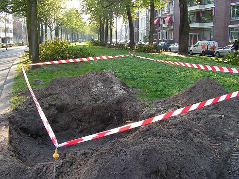 huh? zomaar een hele boom weggehaald? Als hij niet eerst omgezaagd is, dan is hij misschien verplant… hopelijk dan…