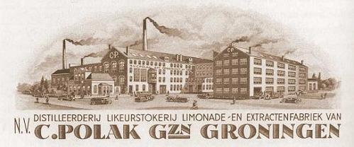 Volgens Stad van het Noorden (pagina 31/32 en 112) richtte C. Polak Gzn. in 1881 een distilleerderij, likeurstokerij, limonade- en extractenfabriek op aan de Petrus Campersingel 31 alhier (vooral ook zichtbaar vanaf het Damsterdiep). Na 1903 kwam dit bedrijf bekend te staan(pdf pag. 78) als ‘de natte’ Polak, dit om het te onderscheiden van ‘de droge’ of AJ Polak, die aan de Viaductstraat een puddingpoederfabriek begonnen was.