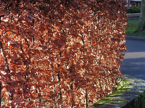 Het is een beukenhaagje waar vrij laag zonlicht doorheen komt.