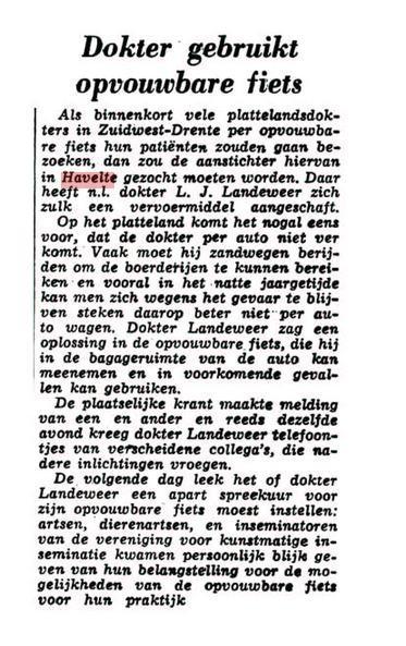 Geplaatst op: 19 februari 2009 Hoort bij: Geschiedenis 1 reactieDezelfde huisarts die bij mijn geboorte met de auto in de sneeuw bleef steken, zat blijkbaar ook wel eens in de modder vast. Hij vond daar iets op, getuige dit berichtje in de Leeuwarder Courant van 5 september 1956, een maand voor de geboorte van mijn broer: