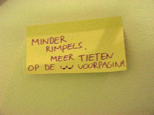 Bij de UK zijn we heus wel wat gewend. Maar wat ons als kernredactie vanochtend in het gezicht sloeg tart elke beschrijving. De hele toko zat van onder tot boven ondergeplakt met memo-geeltjes. Een representatieve steekproef:
