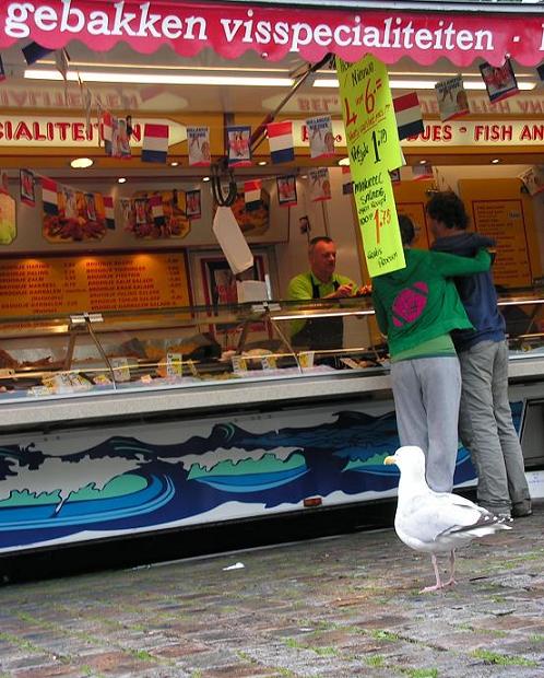 Vismarkt – meeuw op het vinketouw; doet-ie ‘t, of doet-ie ’t niet?: