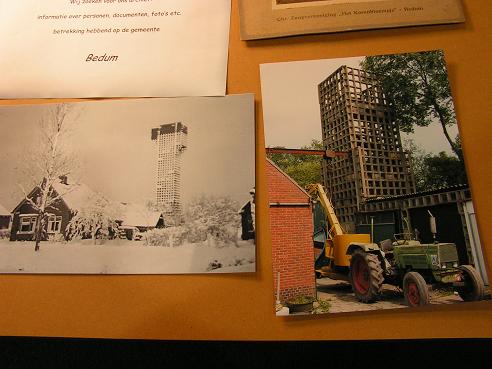 Nog een rondje over de informatiemarkt. In de stand van de Historische Vereniging Bedum lagen deze foto’s. Ik kende zulke raatbouwtorens alleen van Warfhuizen en Winschoten en wist niet dat de Luchtwachtdienst er ook een aan de Oude Dijk in Bedum had: