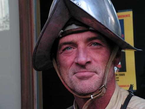 Deze Spaanse soldaat kwam helemaal uit Den Briel. Zijn helm woog bijna een kilo: