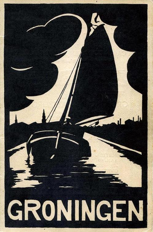 Je zou denken dat het van een gevestigde, professionele kunstenaar was, maar nee, dit titelblad uit 1924 werd ontworpen aan de toen vrij nieuwe Middelbare Technische School, waarvoor het boekje ook wel reclame maakt. Om precies te zijn werd de omslagtekening aan de afdeling kunstnijverheid uitgevoerd door mejuffrouw J.M. Werleman, onder supervisie van de tekenleraar A.W. Kort.