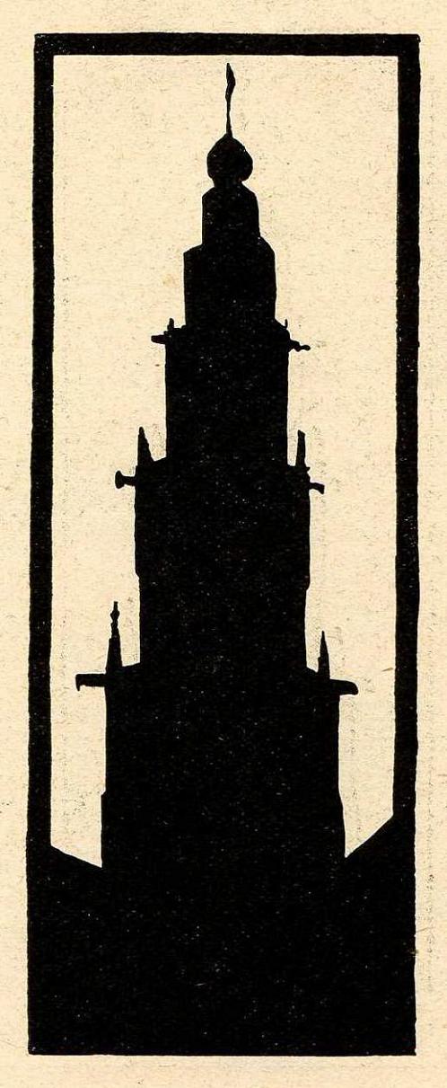 Een leerling van de kunstnijverheidsafdeling aan de MTS maakte waarschijnlijk weer deze Martinitoren op het schutblad: