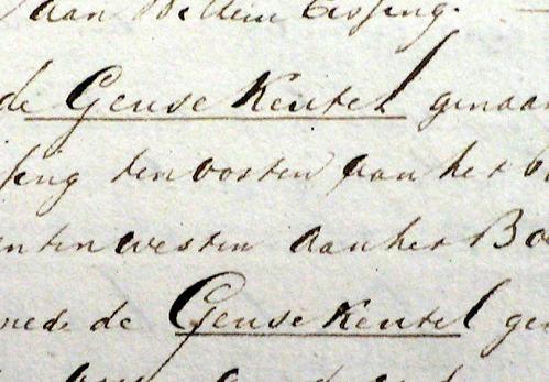 Uiteraard ook de acte van 1819 opgezocht. Daarin heet het land nog de “Geuse Keutel”, wat heel dicht bij mijn naamsverklaring zit.
