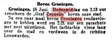 Natuurlijk even in de Leeuwarder Courant gekeken of er iets over deze Zeppelin in stond. En jawel: