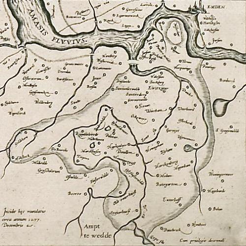 In de hoge Middeleeuwen lag er nog een landstreek met enige tientallen, naar verluidt bloeiende nederzettingen. Maar achter de kleiwallen op de zuidoever van de Eems (Amasis Fluvius) schrompelde een metershoog veenpakket langzamerhand in tot een soort van dal:
