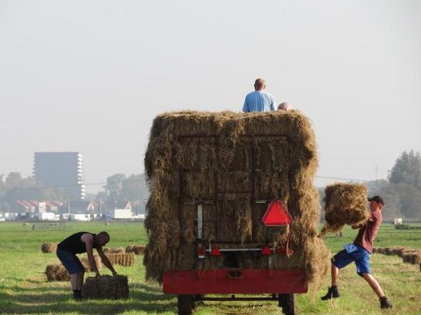 Oef ja daar heb ik lang geleden ook nog wel mee gesleept. Achteraf prikt alles en wil je maar één ding: langdurig douchen. Grappig beeld trouwens, dat ambachtelijke gesjouw met ouderwetse rechthoekige hooibalen tegen die achtergrond.