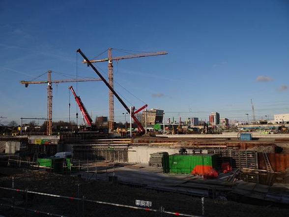 Aan de Helperzoom een enorme bouwput wegens de aanleg van het nieuwe station Europapark, waardoor er negen dagen geen treinen rijden vanuit Groningen richting Assen en Winschoten: