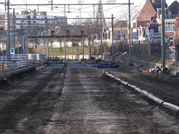 ProRail maakt van de gelegenheid gebruik om bijna het het sporenstelsel langs de (Verlengde) Lodewijkstraat te vervangen, inclusief het kiezelstenenbed: