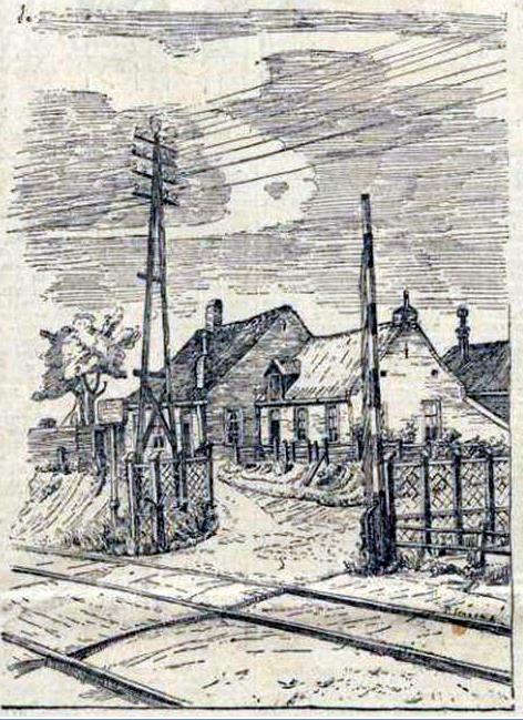 “Onze afbeelding, een reproductie van een keurige penteekening van den heer P. Sennema, teekenleeraar hier ter stede, is het oude moeskershuis, dat tot voor eenige laren in de Moesstraat stond, direct bij den overweg. Dit oud, aardig Moesstraathoekje moest bij den aanleg van de Fruitstraat worden afgebroken, ’t Was een mooi type van een boerenwoning, zooals er maar weinige meer zijn. De blauwgrijs gepleisterde muren van het voorhuis, de schuine daklijnen, de helderroode pannen gaven het boerenhuisje een bijzonder warme bekoring.