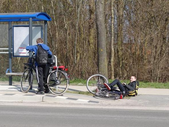 Eelderwolde, deze jongens hadden zoveel lol dat die ene met fiets en al omviel: