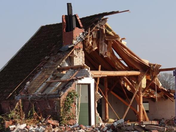 Een van de vijf woningen die voor de baanverlenging moest wijken: