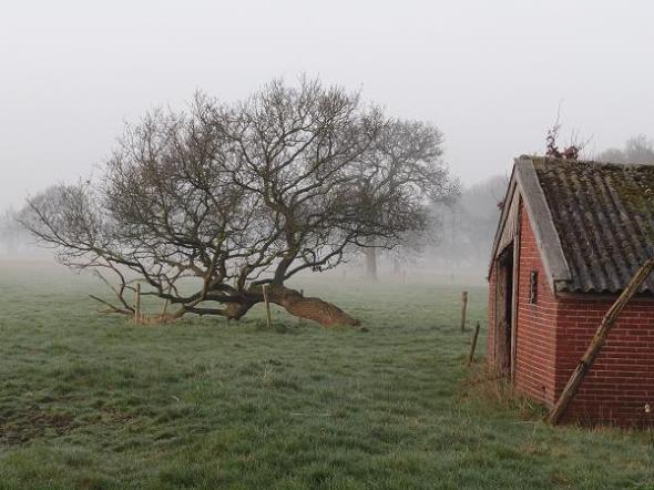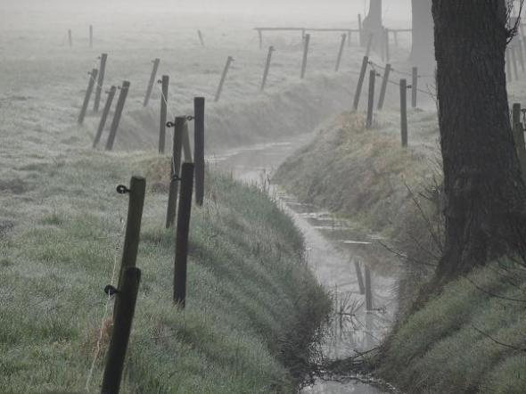De damp sloeg de sloten en kanaaltjes uit, zoals hier bij het Omgelegde Eelderdiepje ter hoogte van het transferium Hoogkerk: