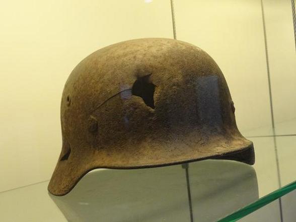 En een helm die duidelijk maakt hoe het kon aflopen met iemand die zwoer bij dergelijke symbolen: