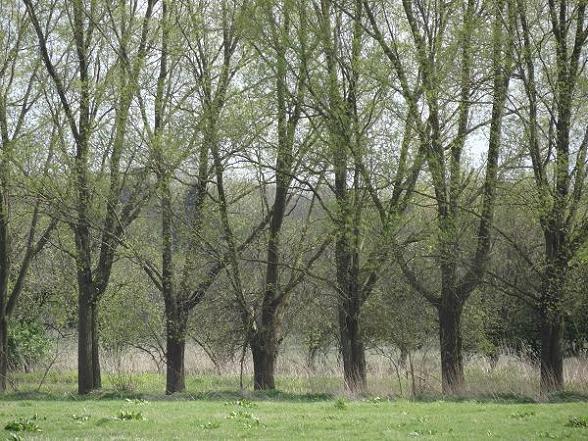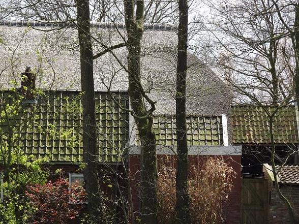 Pril groenende bomen rond de verlaten boerenplaats bij de A7:
