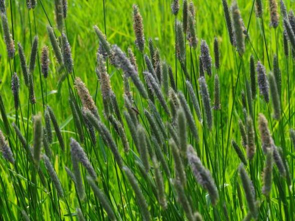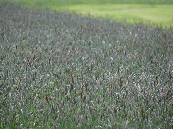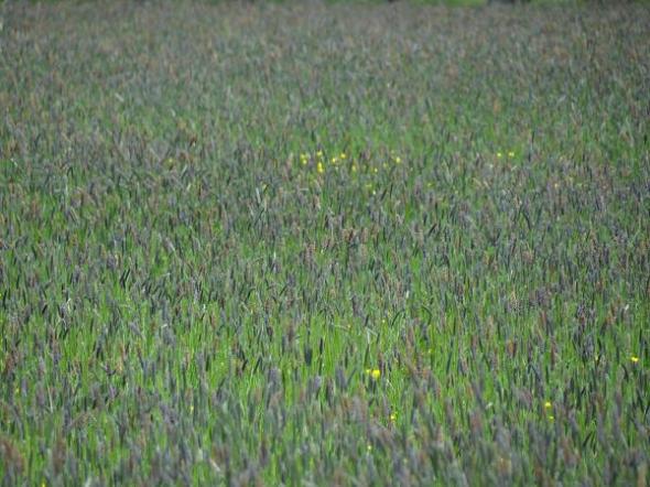Grassoort is geknikte vossenstaart (http://bit.ly/LrVP5q), dat laat weilanden zo blauw kleuren en als je goed oplet wordt de aar bruin en lijkt op de staart van een vos, vandaar de naam. Het is al eens eerder op je weblog aan de orde geweest: https://groninganus.wordpress.com/2009/06/11/blauw-gras-is-wat-anders-dan-blauwgras