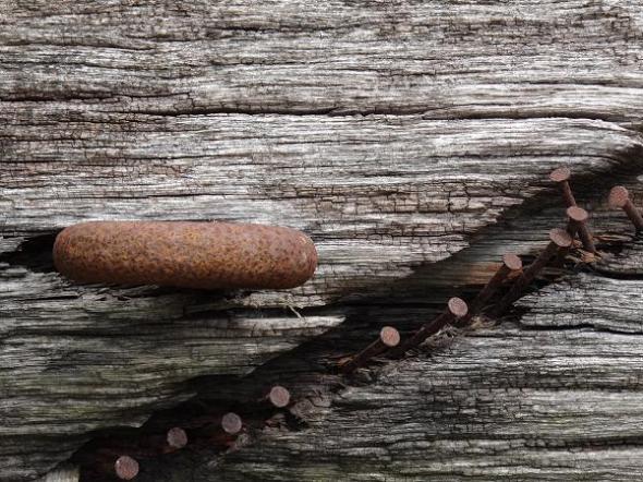 Detail van een uitwateringsschroef, liggend op de werf bij watermolen de Jonge Held: