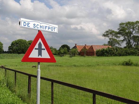 Het naambordje geeft abusievelijk een lidwoord bij dat Schifpot. Met de verwarring over dat lidwoord begon ook de gelinkte discussie uit 2006.