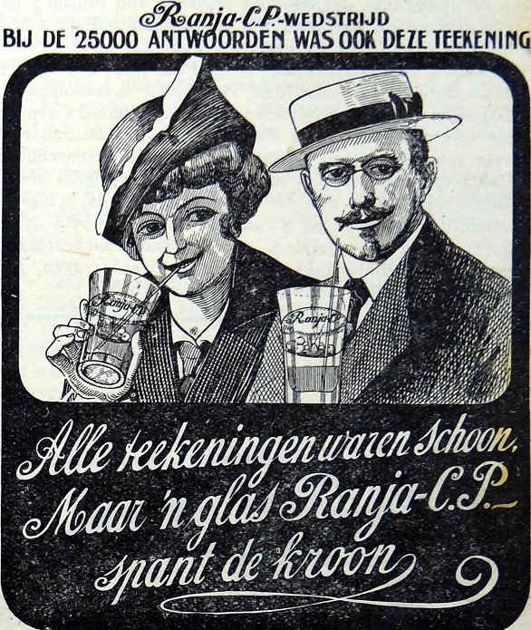 C. Polak Gzn. zette het merk Ranja in 1920 voornamelijk via beurzen in de markt. Van krantenreclame door het bedrijf was dat jaar nauwelijks sprake. Dat kwam later pas. Zoals bij een tekenwedstrijd in 1921. Het schijnt dat de inzendingen met postzakken tegelijk het bedrijf werden ingedragen. Boven zie je er een van, die prompt in het Noordelijk Sportblad verscheen.