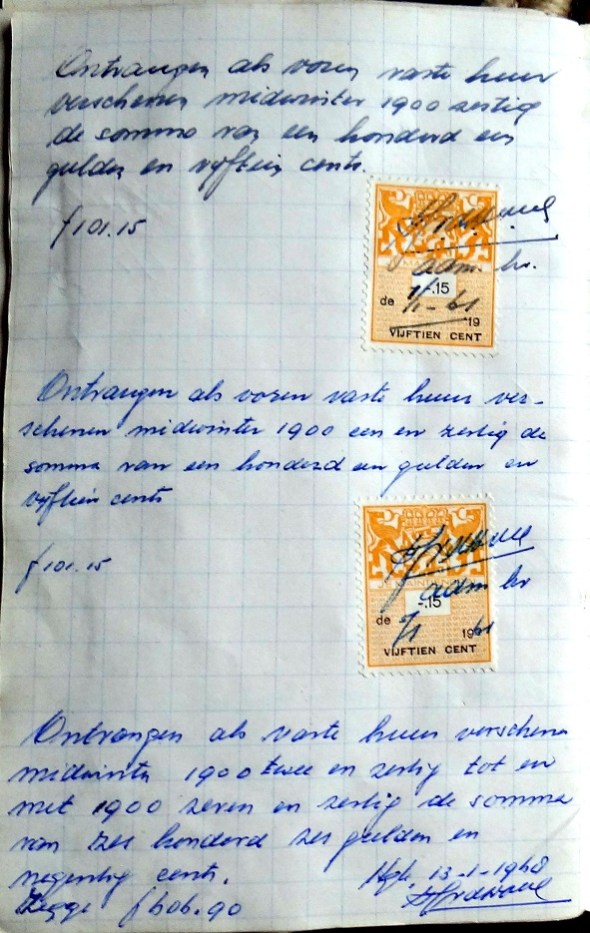 De laatste kwitantie in het huurboekje dateert van 13 januari 1968 en bewijst de betaling van zes jaar pacht ineens: