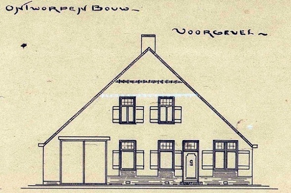 Al eerder vertelde ik dat de Grouwelderij na 1921 geen herberg bleef en dat Jaap Nienhuis en vrouw het voorhuis in 1936 geheel lieten vernieuwen. Die verbouwing had nogal wat voeten in de aarde, onder andere doordat de burgemeester van Noorddijk in hoogst eigen persoon de eerste tekening afkeurde wegens de ramen die in de topgevel gedacht waren.
