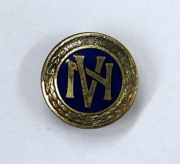 Reversknop voor het 25-jarig lidmaatschap van de NV: