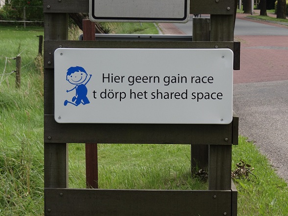 Hopelijk hebben ze de kinderen daar wel even verteld dat ze moeten oppassen voor auto’s van randstedelingen, Friezen en Limburgers die piekerend over de betekenis van die borden alle aandacht voor de weg verliezen.