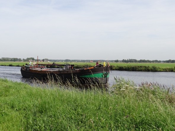 Oude vrachtboot in het Aduarderdiep bij Nieuwbrug: