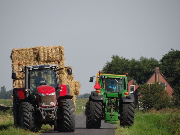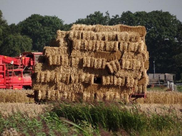 Sinds hooi en stro machinaal worden opgerold tot enorme balen die ook machinaal op wagens worden geladen, raakt de edele kunst van het pakjes stapelen in vergetelheid. Maar misschien ligt het ook wel gewoon aan aan het zonnesteekweer, dat deze wagen er nogal slordig opgetast uitziet: