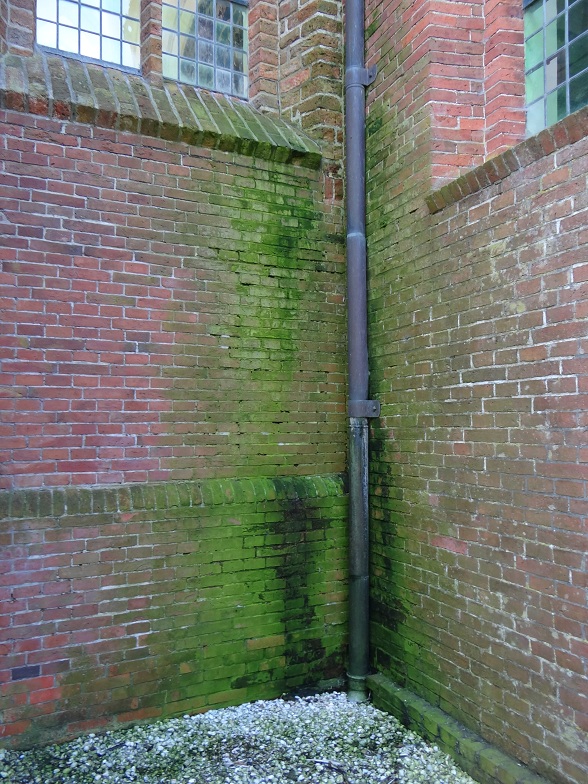 (De groene vlekken komen van het glas-in-lood en niet van een doorgeslagen buitenmuur.)