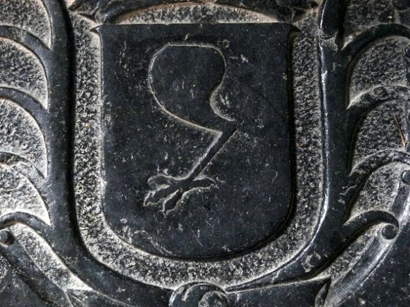 Het wapen op de zerk van ds. Johannes Piccardt die hier van 1677 tot 1680 op de preekstoel stond: