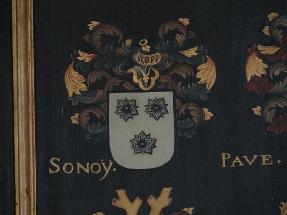 Het oudste rouwbord is dat van Diederik Sonoy (1529-1597), als geuzenleider en papenvreter het equivalent van generaal Mladic in Noordhollands Noorderkwartier tijdens de Nederlandse Opstand. Zijn wapen bestaat uit drie mispelbloemen: