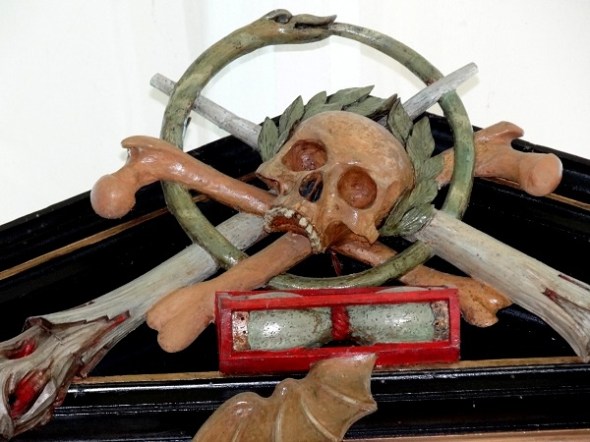 Fascinerend zijn de bekroningen van de rouwborden, met doodskoppen, slangen die in hun eigen staart bijten, en zandlopers. Bij deze is het dna-materiaal in de beenderen nog zichtbaar: