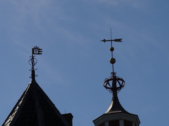 Weer buiten in de warmte wijzen vaan en pijl op koor en toren de windrichting aan: