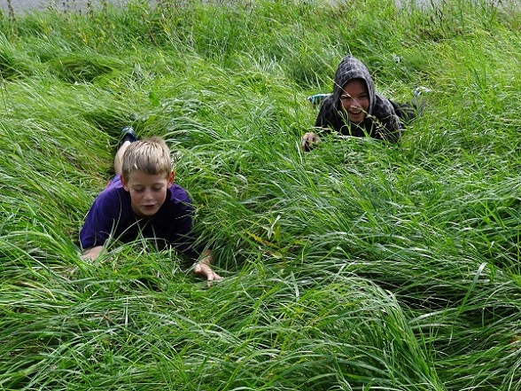 Haha, leuke struikrovertjes! Lekker hoog gras daar om je in te verstoppen.